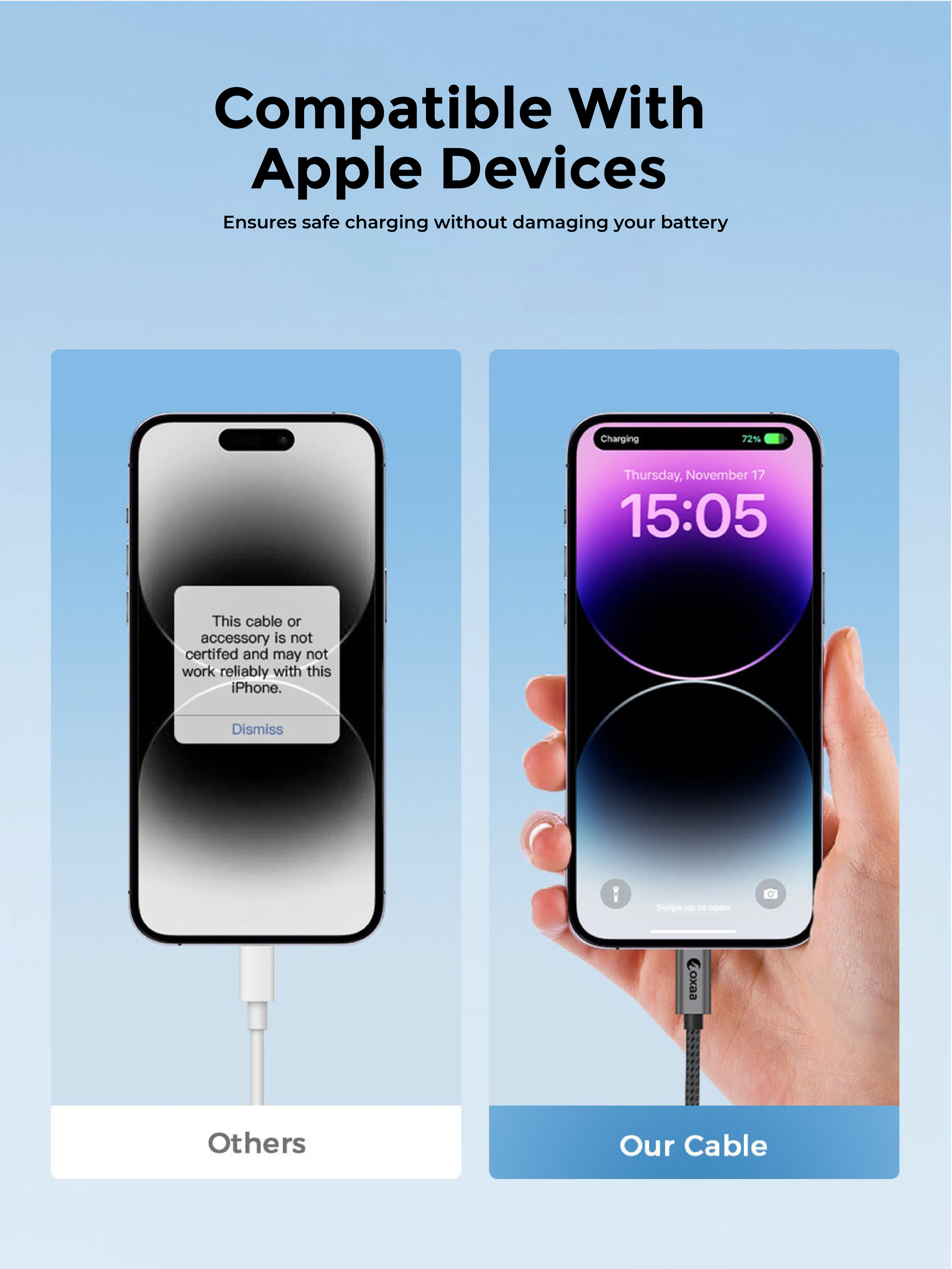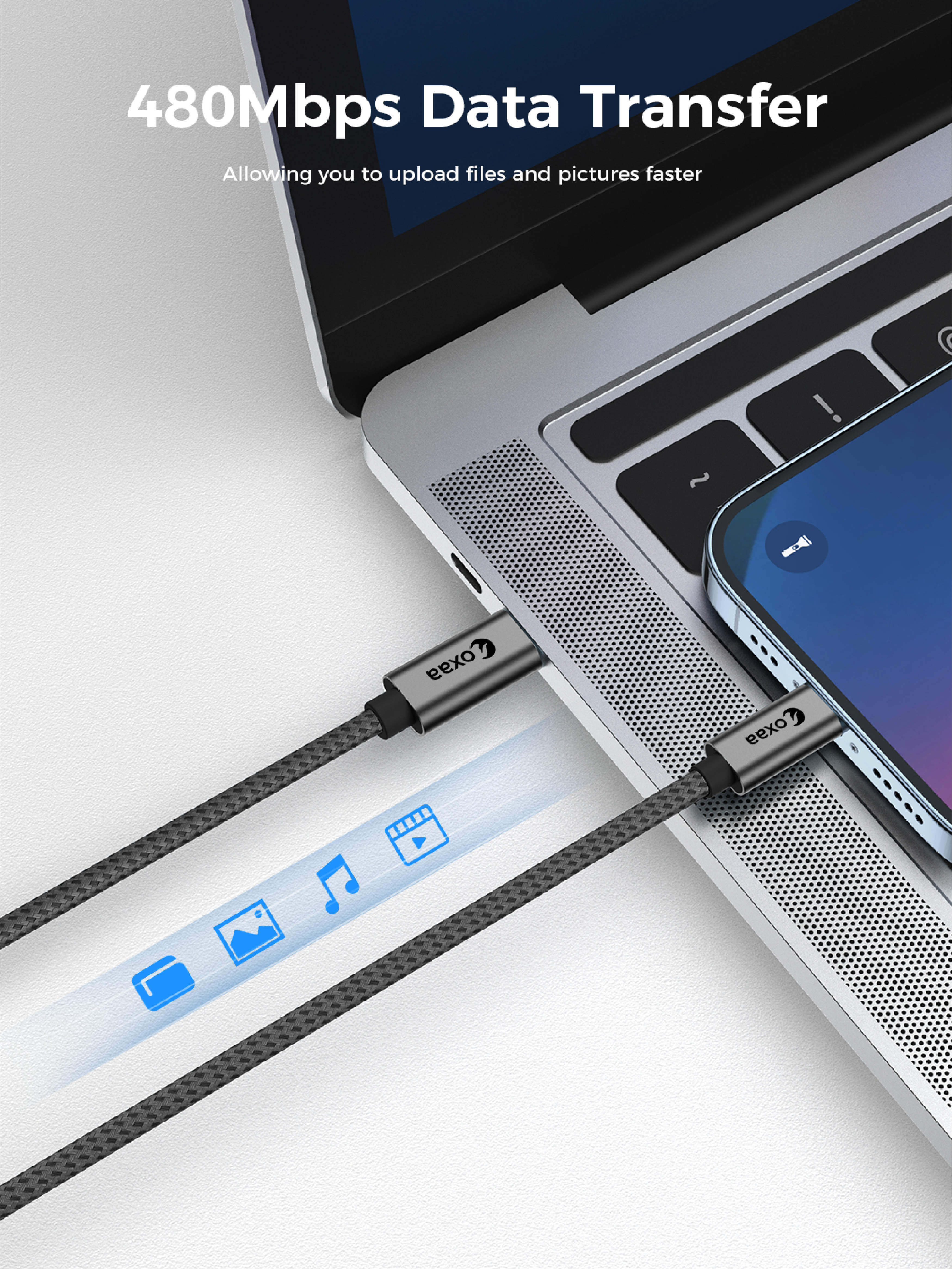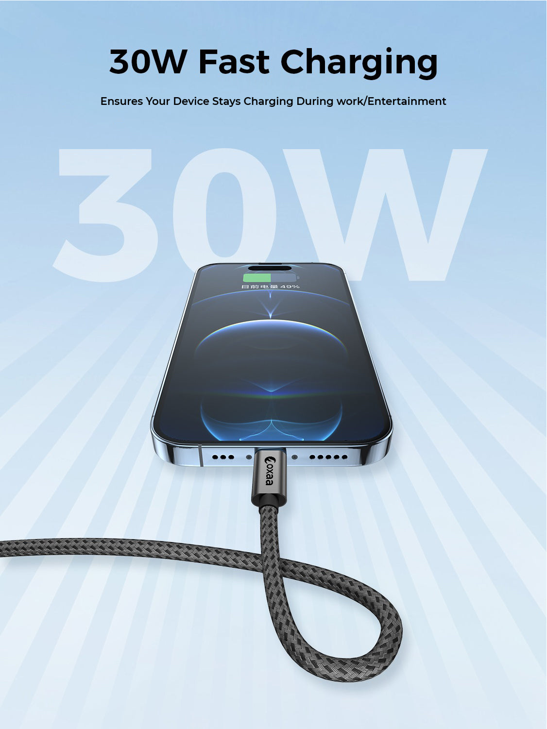 OXAA’s 30W Fast Charging Cable delivers lightning-fast, safe power and 480Mbps data transfer.