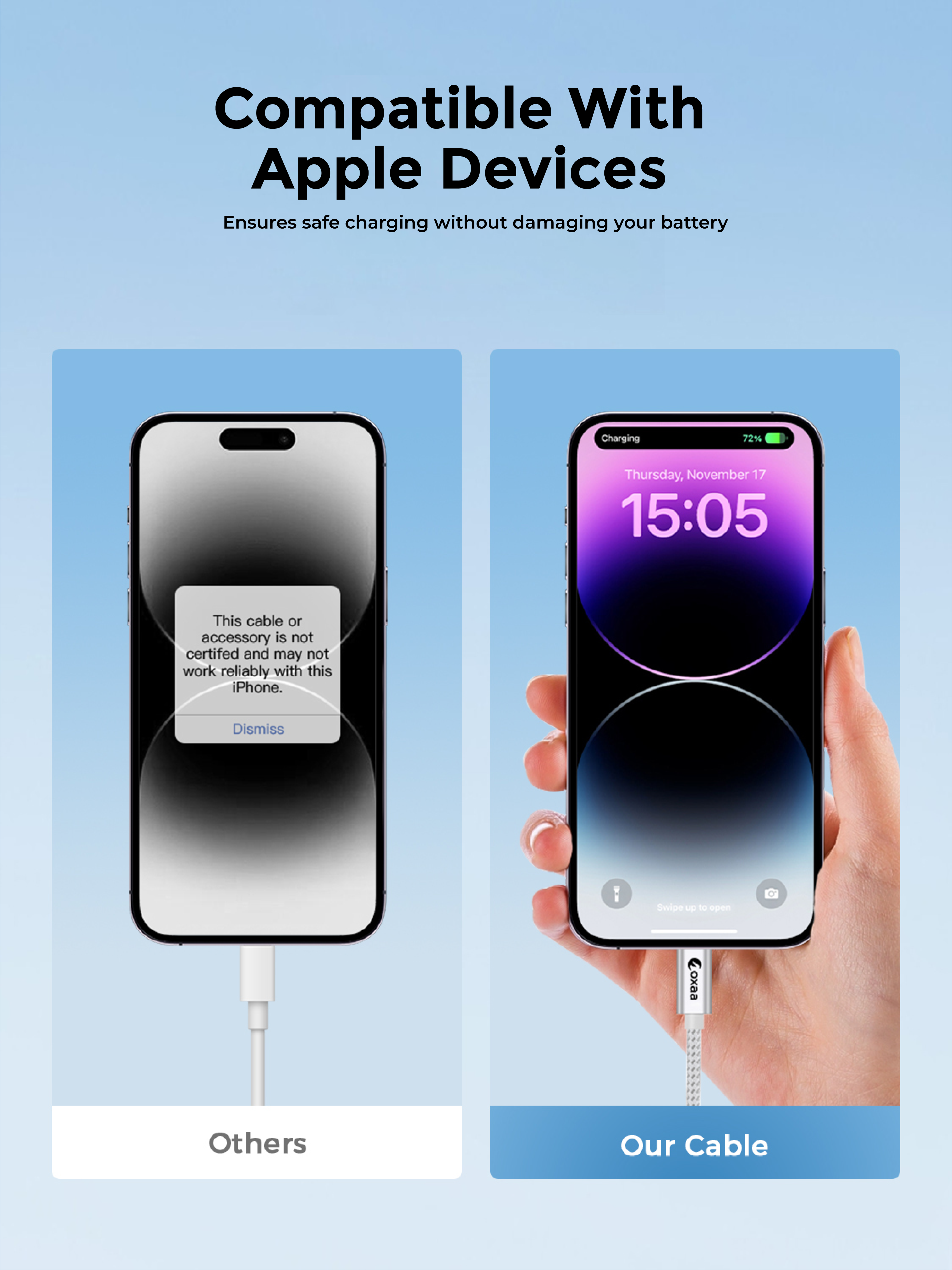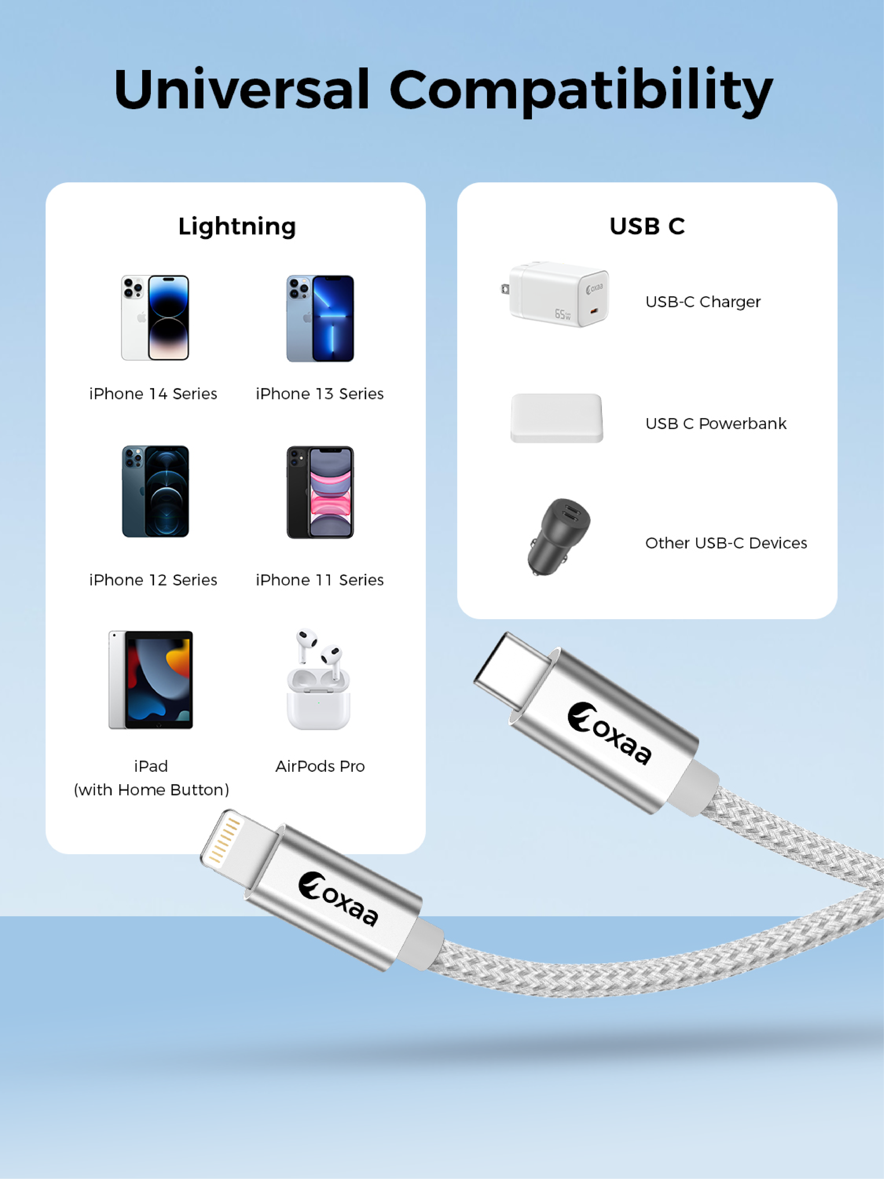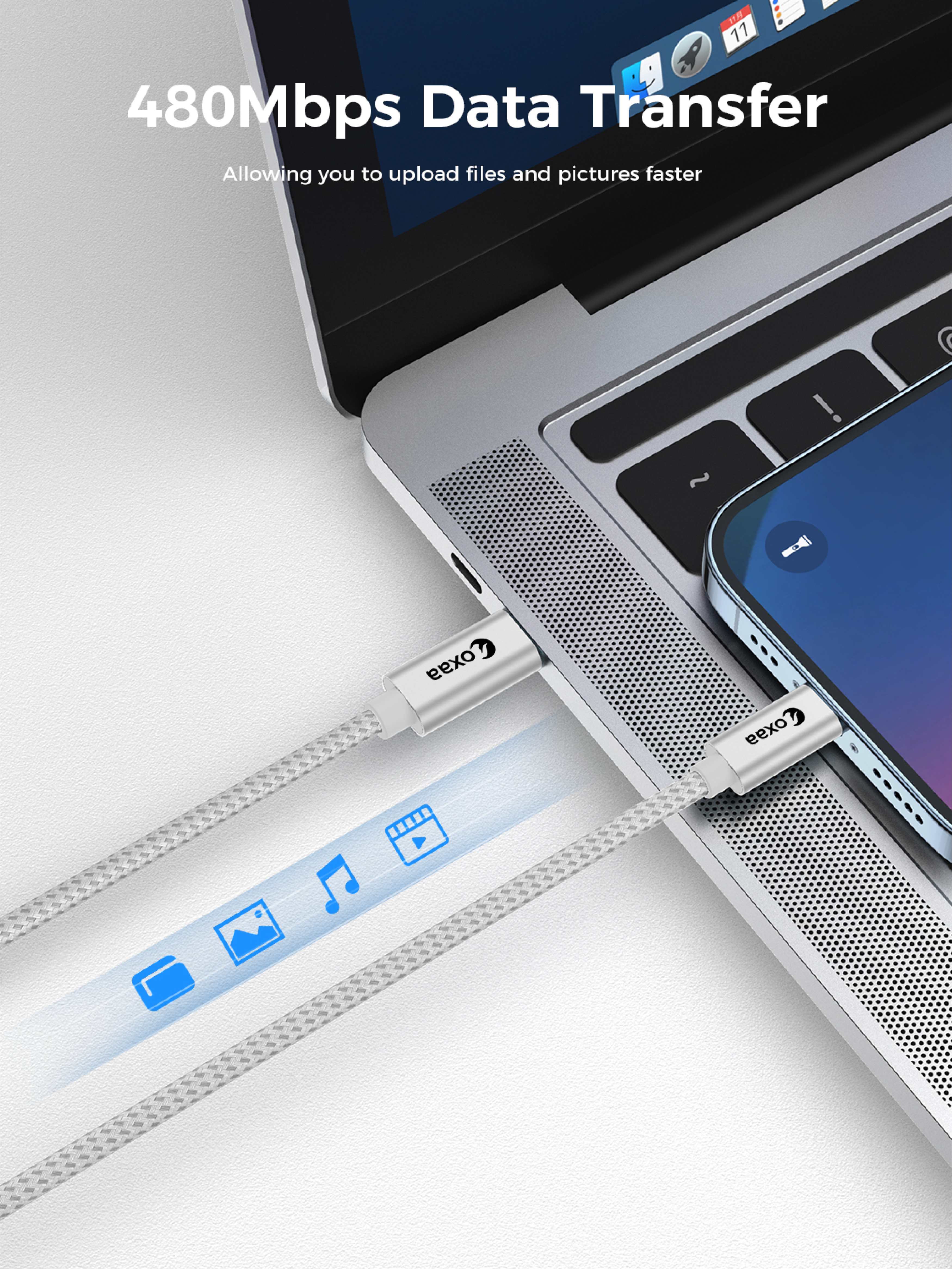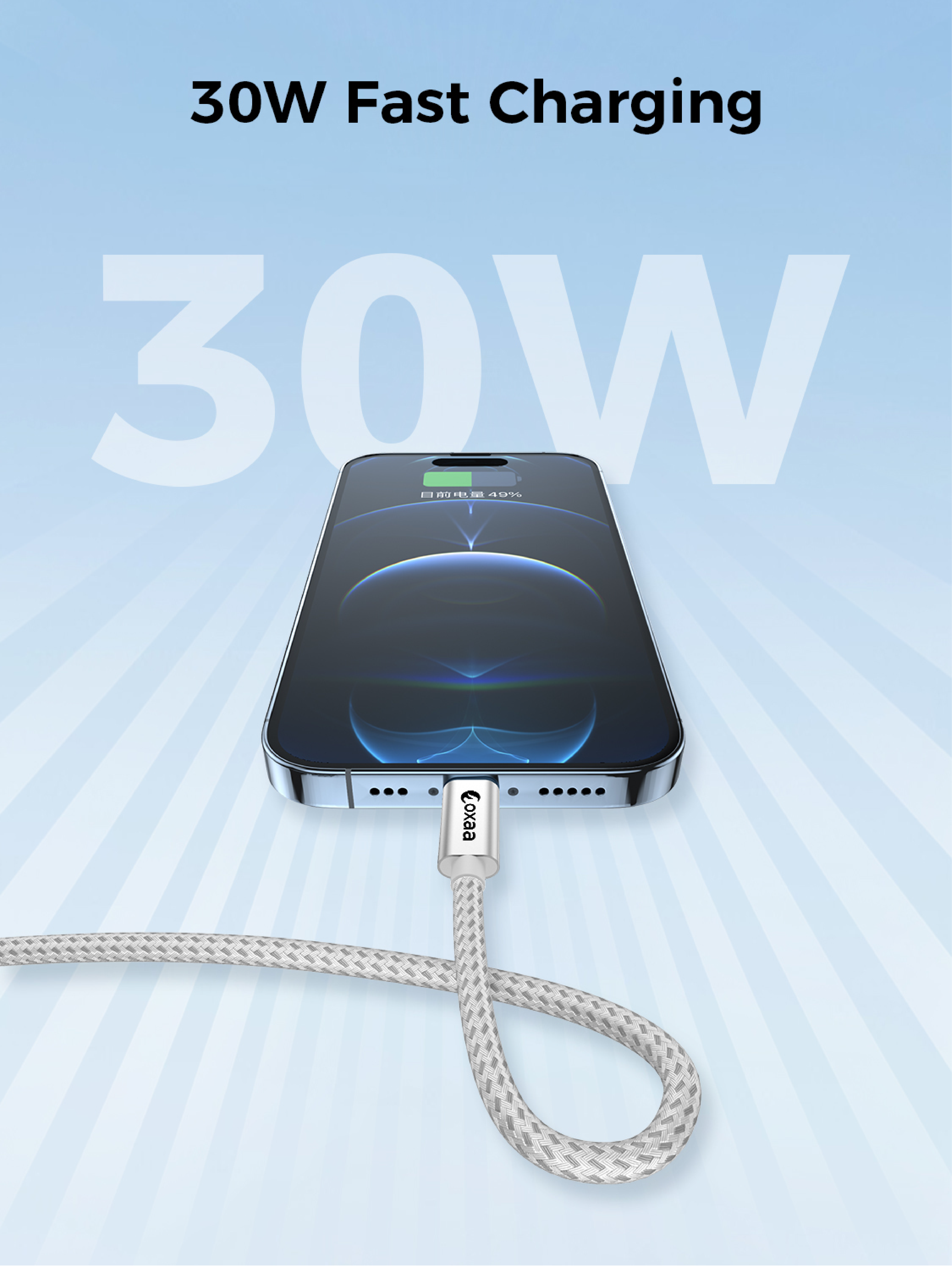 OXAA’s 30W Fast Charging Cable delivers lightning-fast, safe power and 480Mbps data transfer.